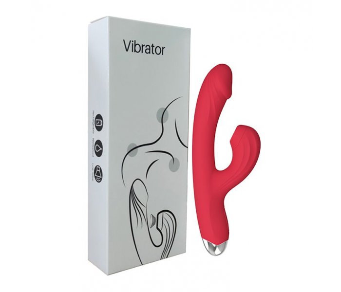 СИЛИКОНОВЫЙ ВИБРАТОР-КРОЛИК С ВАКУУМНЫМ КЛИТОРАЛЬНЫМ ОТРОСТКОМ КРАСНЫЙ